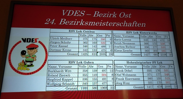 diesjährigen Meisterschaften des VDES Bezirkes Ost in den
