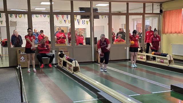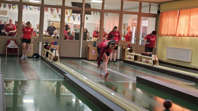 Frauen kegeln.